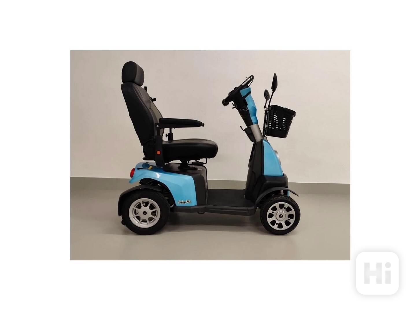 Repasovaná holandská čtyřkolka Excel Galaxy Plus je určená pro osoby se sníženou schopností pohybu. Dobré baterie 2x12V 73Ah, motor 800 W, délka 139 cm, šířka 67 cm, rychlost 15 km/h, nosnost 160 kg. Součástí je nabíječka, držák holí, opěrka hlavy, košík a zpětná zrcátka. Záruka 12 měsíců, pozáruční servis, možnost doručení