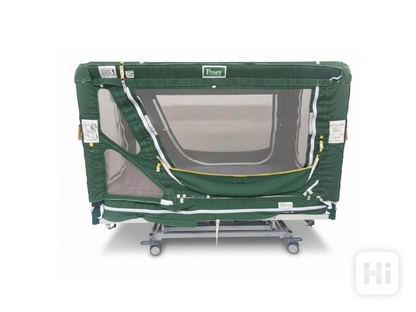 Lůžko má bezpečný kryt na zip a je vhodné pro pacienty s vysokým rizikem pádu, demence nebo impulzivního chování. Možnost elektrického nastavení výšky postele, úhlu opěradla a úhlu nohou.